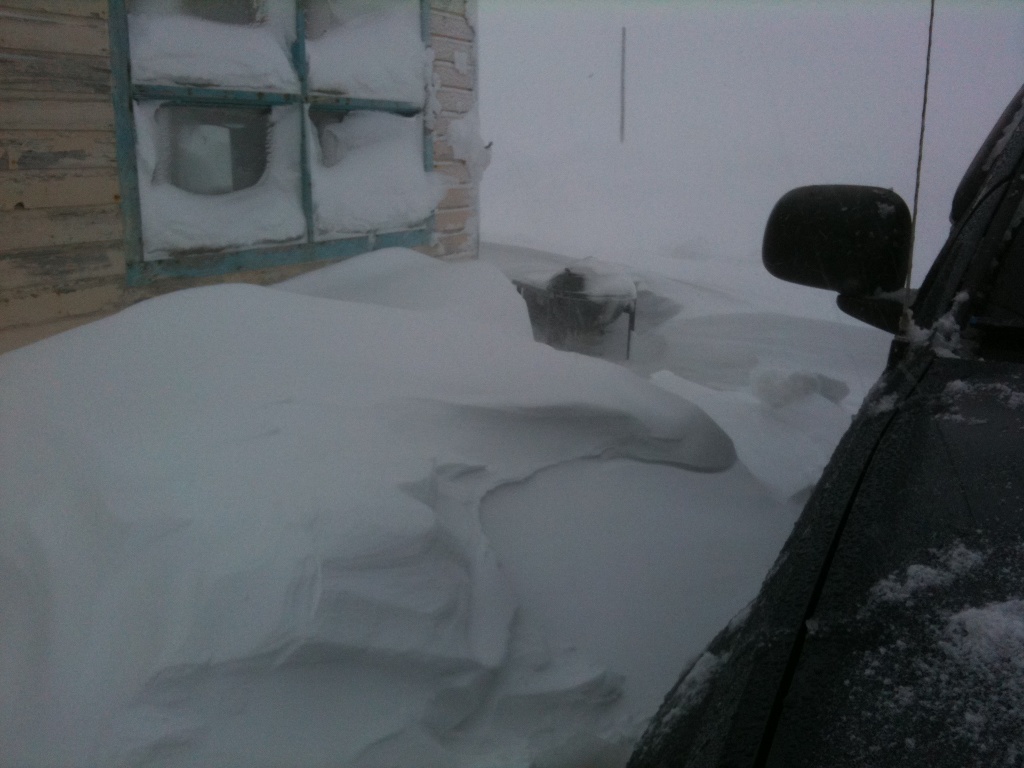 For the past week, the weather has been fairly unfortunate here in Barrow.  We had a snow day on Wednesday.  It was a total whiteout,with so much snow blowing around that I could barely see my car out the front door, let alone the