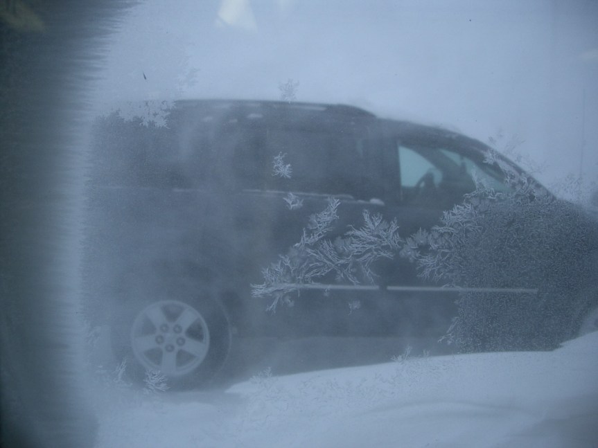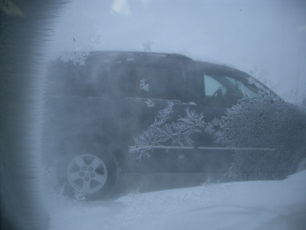 View out the front window during Wednesday's blizzard. Notice the snow streaks and the frost flowers.