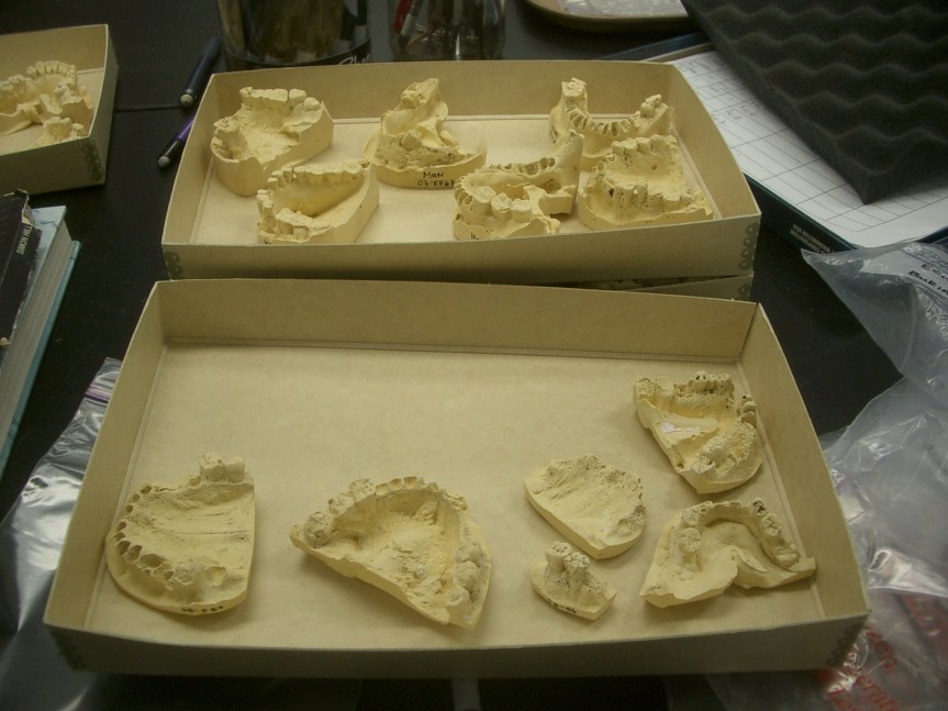 Many of the classic sites on the coast of Alaska have strong indications that walrus were being caught by the people who lived there, but they were excavated decades ago, and finding suitable samples in the collections was not something that could just be done by getting someone to pull a particular bag or catalog number. It pretty much requires looking through mixed lots of artifacts and bags of bones. So I’m in Fairbanks doing just that.