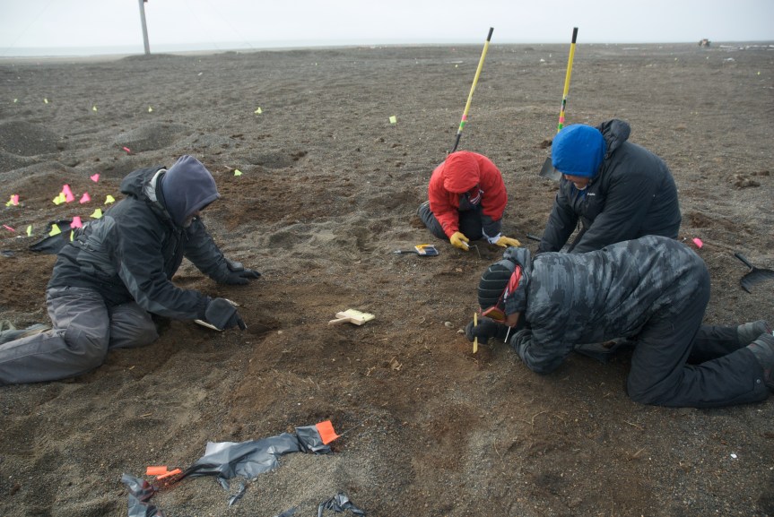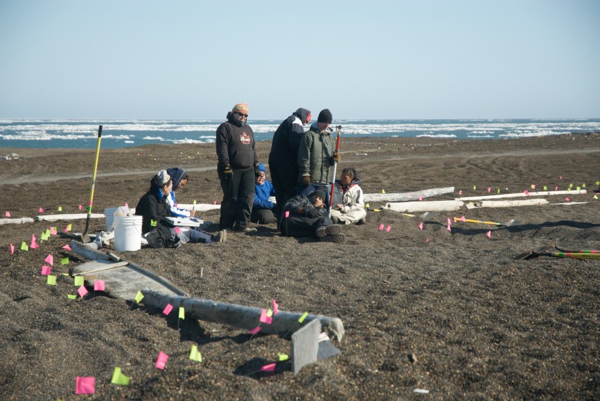 The current residents of Barrow, some of whom are the children of people who grew up at Nuvuk, generally think people should be left where they were buried, absent a pressing reason to move them. In general, I agree. My primary research interests don’t involve digging up burials, which makes it odd that I’ve been involved in excavating over 70 of them at Nuvuk over the years. The thing is, the point is eroding, and if the graves aren’t excavated and moved, their occupants will wind up in the ocean. So there is an urgent reason to be doing these excavations.