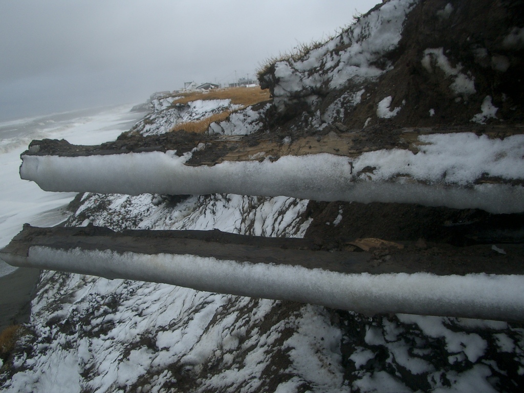 Ice wedge in bluffs near Barrow. They can be much larger.