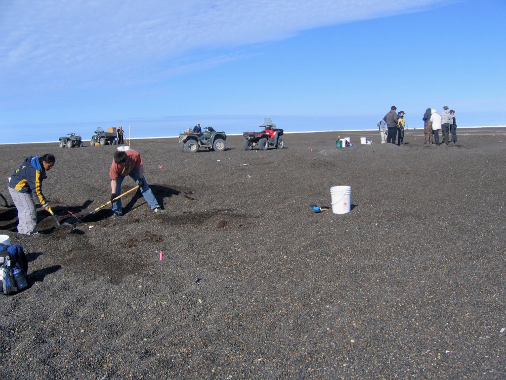 I would say that the rocks we found in burials at Nuvuk fit into this group. They were much larger than the average rock on that gravel spit, so they had to have been gathered deliberately. They were clearly placed in the grave. Why? We can only speculate. They could have been placed by mourners, somewhat like people may drop flowers in a grave today. Or they could have been given in trade for intact items buried with the person.