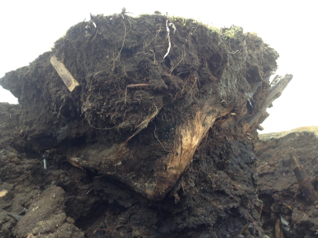Slump block on the right, intact strata on the left. Notice the Visqueen on both sides.