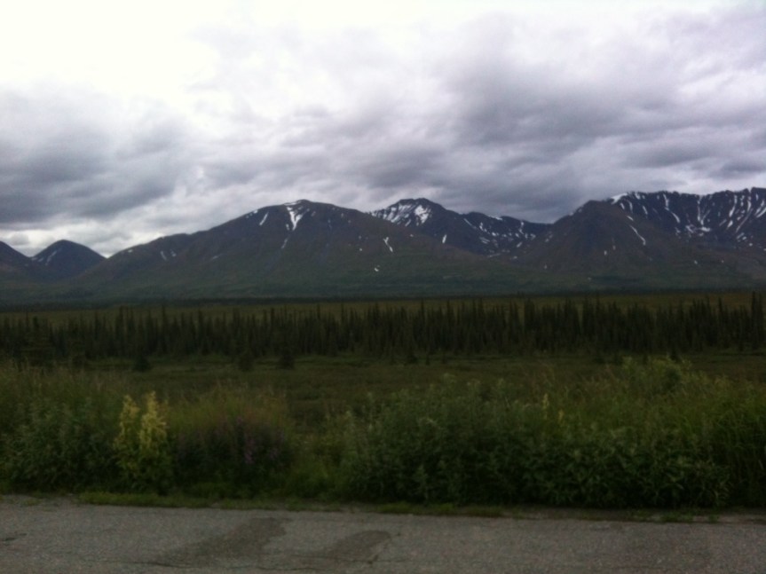 After that, the KTUU fellow wanted to see the farthest North point and go to the bone pile to see if there were any bears. We set off, and almost immediately had to detour. The trail we normally use to get to the site, which is always dry, had water all over it from the storm surge.