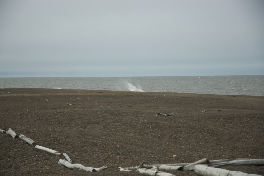 Wave breaking on the Beaufort beach at Nuvuk as the weather improves.