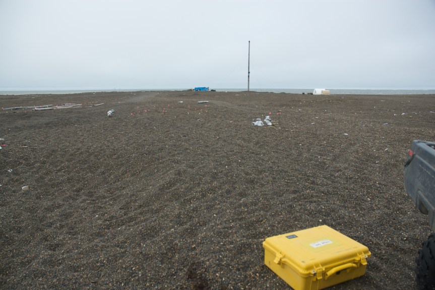 …because Shawn Miller, the physical anthropologist who will be documenting the human remains excavated at Nuvuk this summer, is supposed to be on it. The weather has been rather unfortunate of late, and a number of flights have tried to land, only to be turned back by visibility below minimums, thanks to the fact that the folks who sited the Will Rogers-Wiley Post Memorial Airport seem to have picked the foggiest spot they could find. A lot of folks have gone back and forth between Anchorage or Fairbanks and Barrow a couple of times by now (and you don’t get frequent flier miles for that).