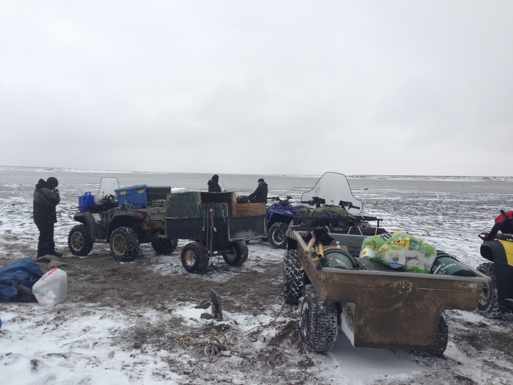More snow on the beach. And a tired polar bear, who was none too happy when we showed up on ATVs.