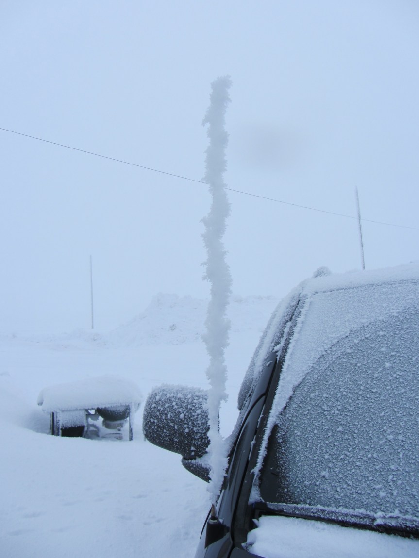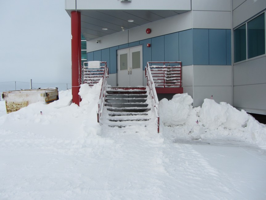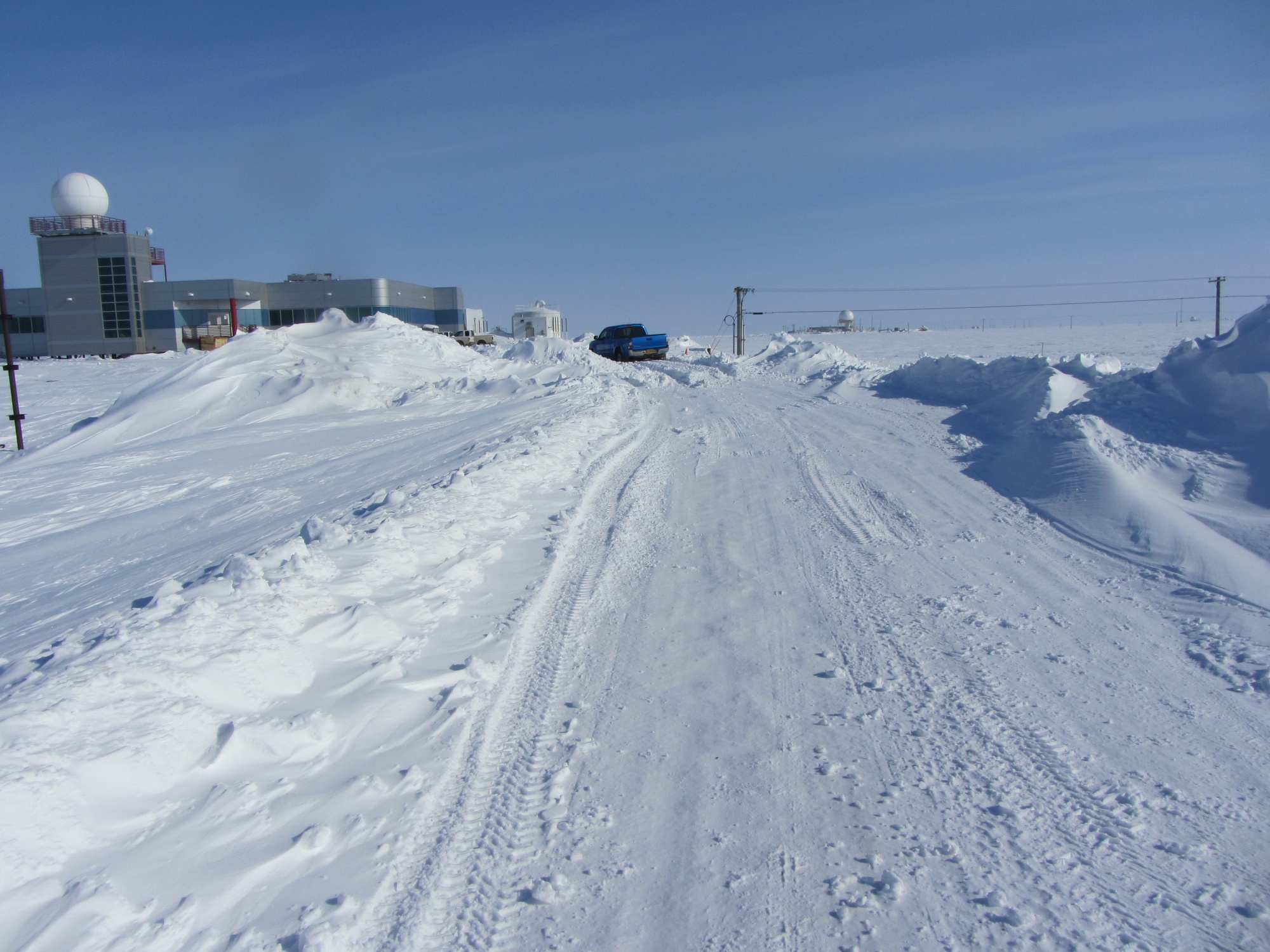 Friday and Friday night were very windy.  It was so bad that the Snowbird Cleaning folks got stuck at the BARC and had to be pulled out.  We were going to have lab, but the combination of the blocked drive (which meant that we’d have to park and climb over the drift) and an afternoon hockey game for some of the students meant that there really wasn’t enough time to make it worthwhile.  I did go over for a while, and it turned out to be a good thing, because Josh (one of the UICS ARM techs) got a little too far into the drive when he came over to check the radar, and I had to help him get out.